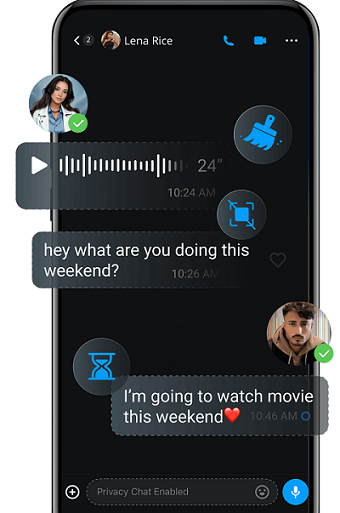 • One-tap safeguard your privacy with End-to-End Encryption, Time Machine, and Disappearing Message. .